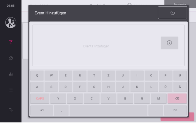 - Wählen Sie den Menüpunkt [Cocktails] oben links im Hauptmenü.