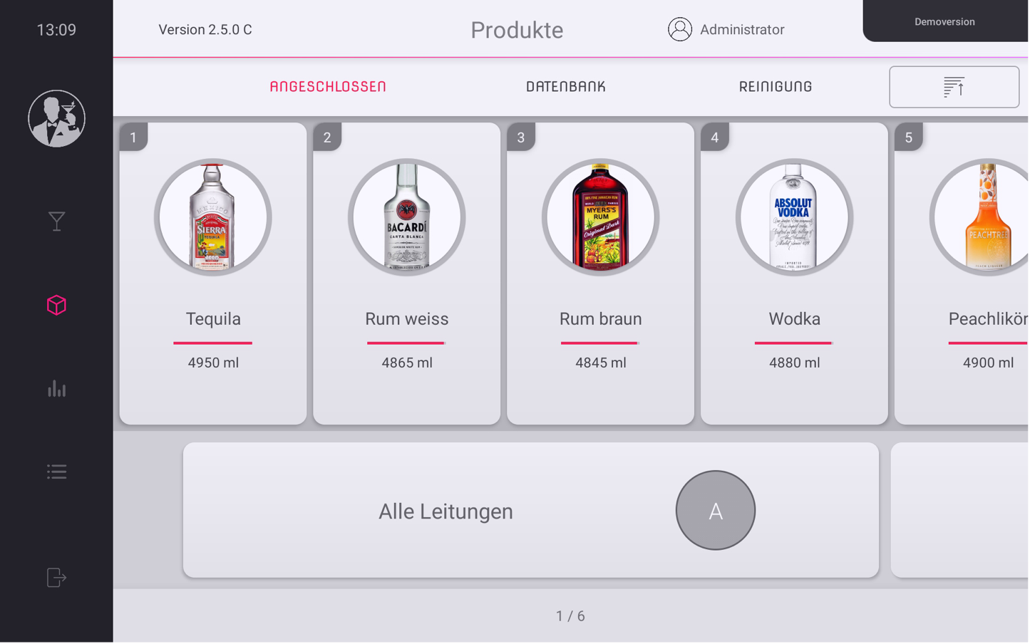 Im Menüpunkt Produkte verwalten Sie alle Zutaten und Leitungen Ihrer TenderOne Cocktailmaschine.